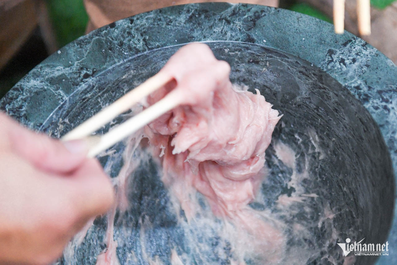 “Making gio cha requires strict procedures,” said artisan Le Tien Ung. “The pork must be fresh and sticky to the touch, and the pounding process must be consistent to ensure the right texture. Even the banana leaves for wrapping must be carefully chosen to enhance the aroma and color.”