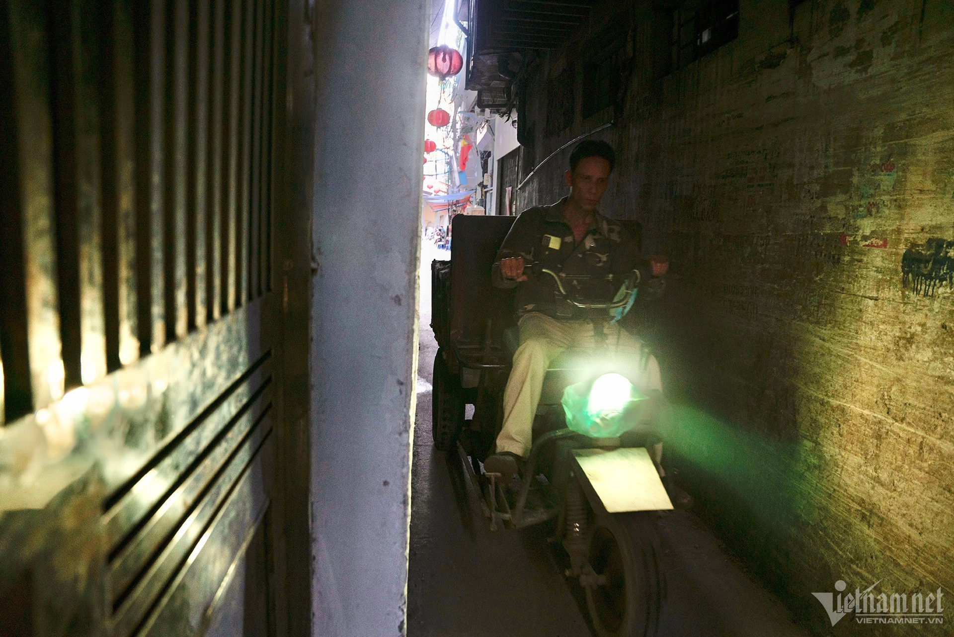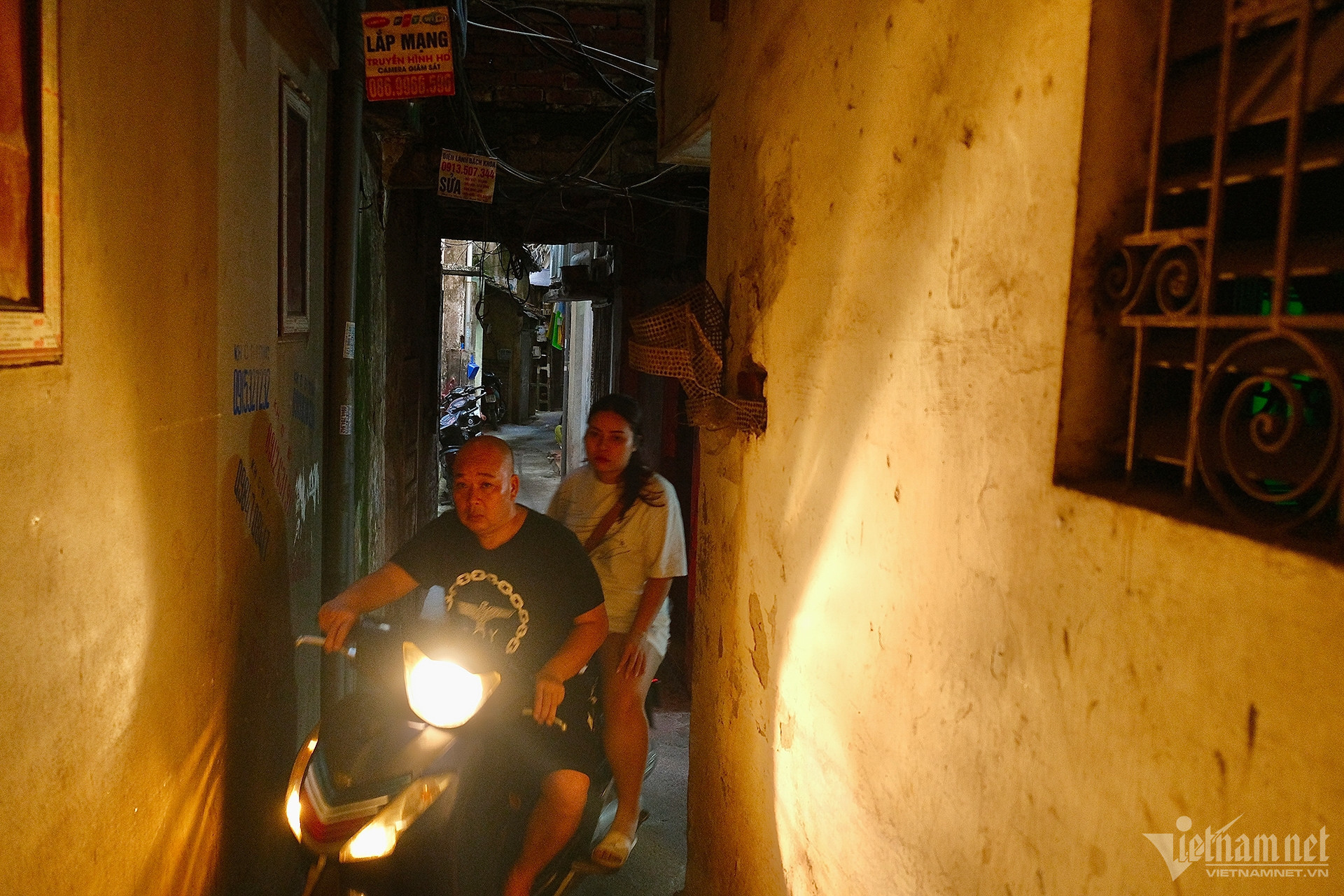 Lenh Cu Alley (Kham Thien Street) is one such place. The walkway is barely wider than an adult's arm, making walking inconvenient. Pedestrians often lean against the wall to avoid moving motorbikes.
