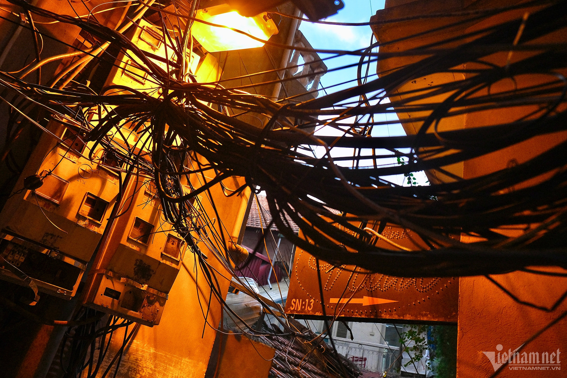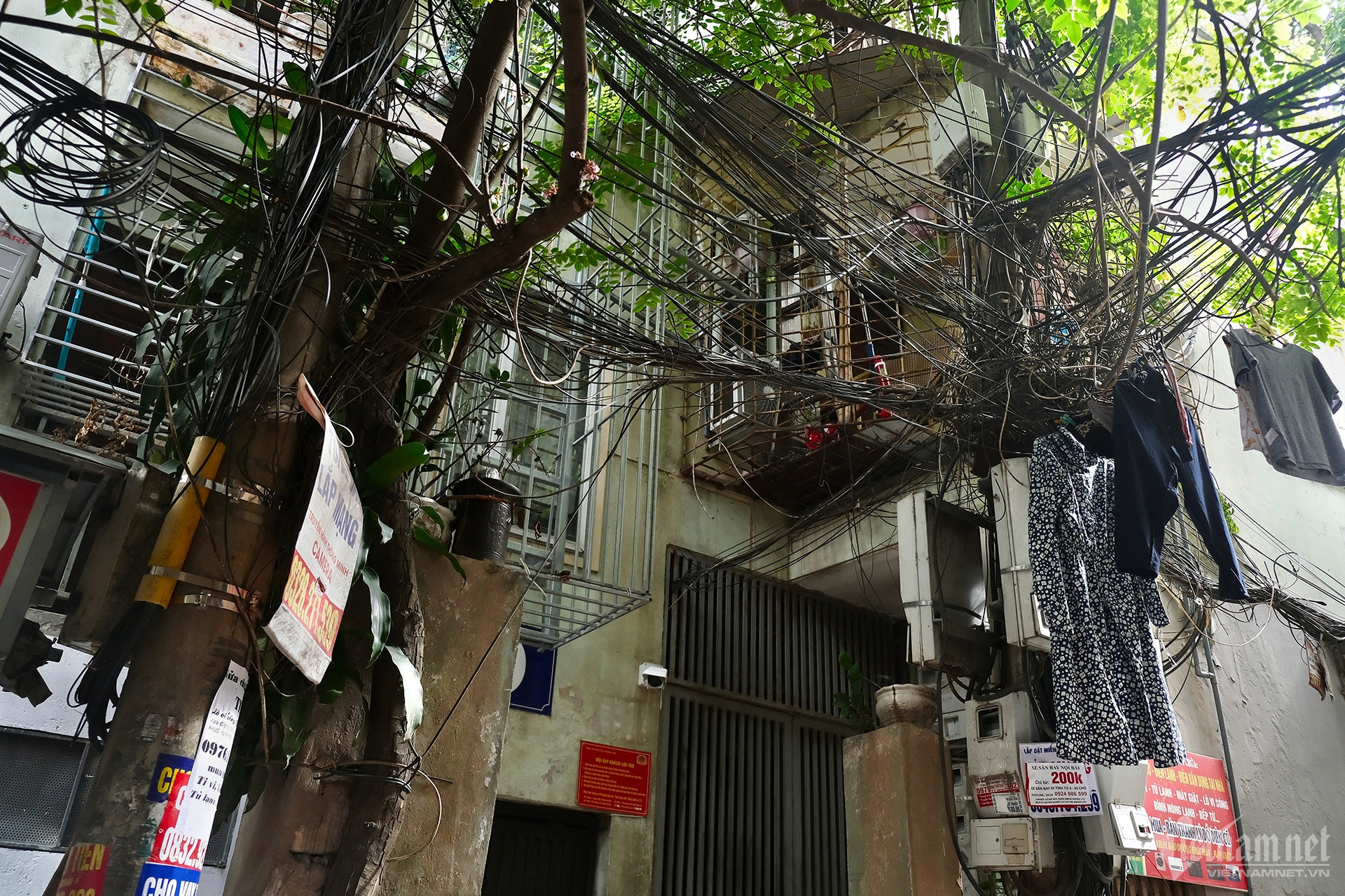 The system of cables and wires in these areas is as tangled as a spider web. People also hang clothes, flyers, and advertising tarps on the wires, which are easily flammable during Hanoi's hot season.