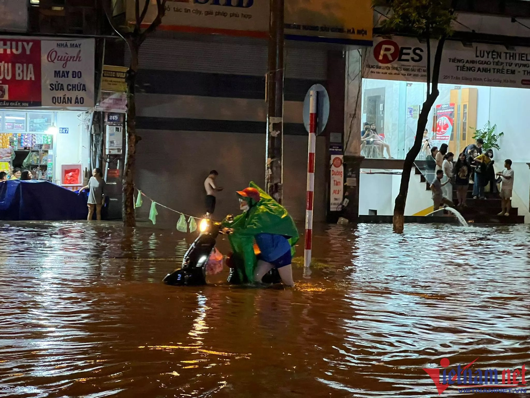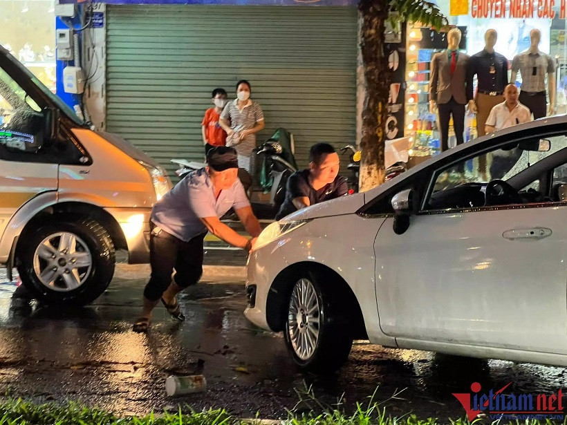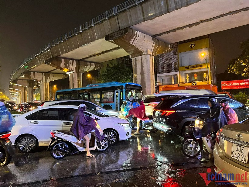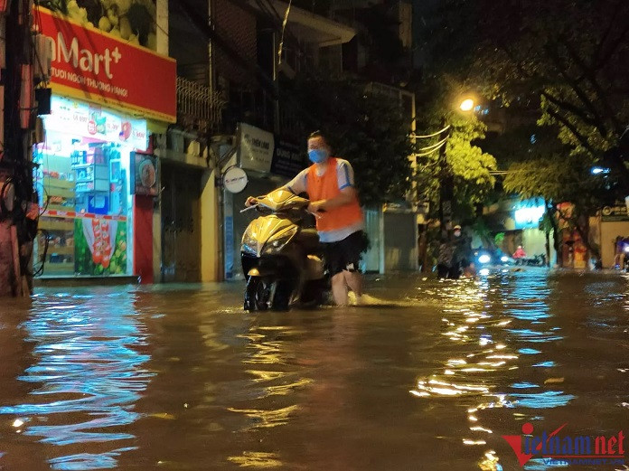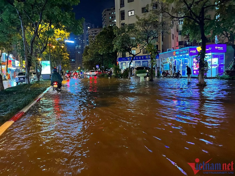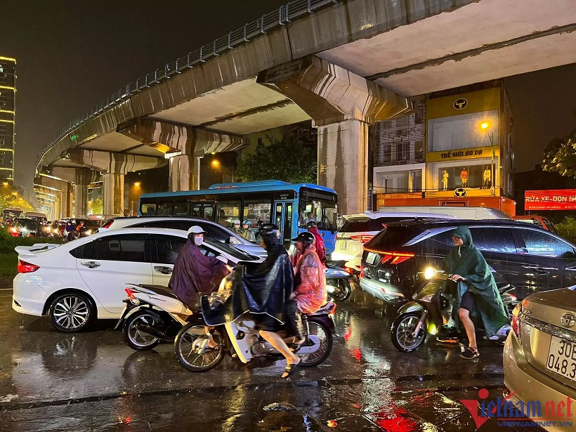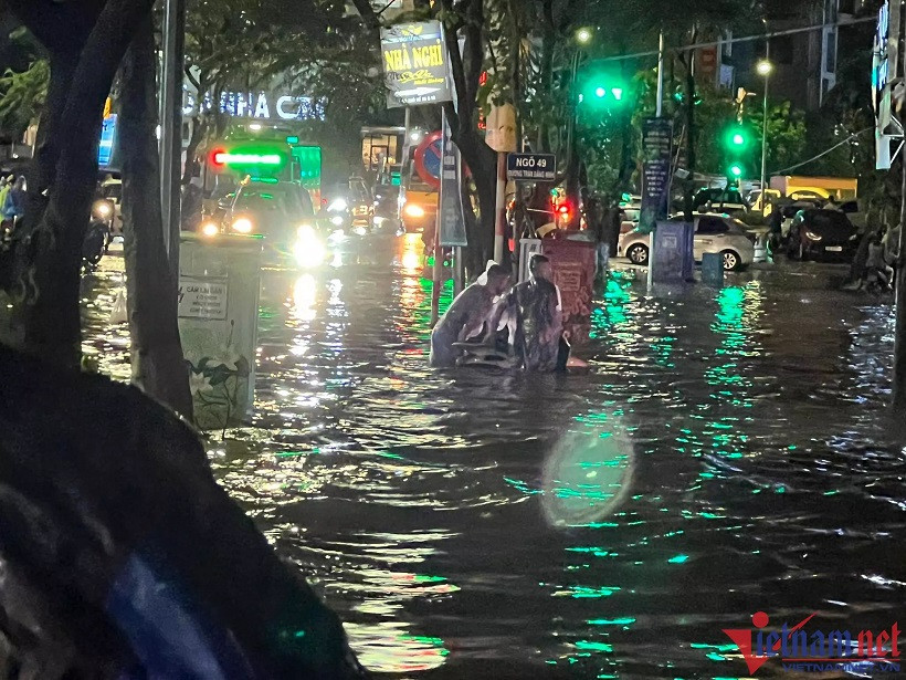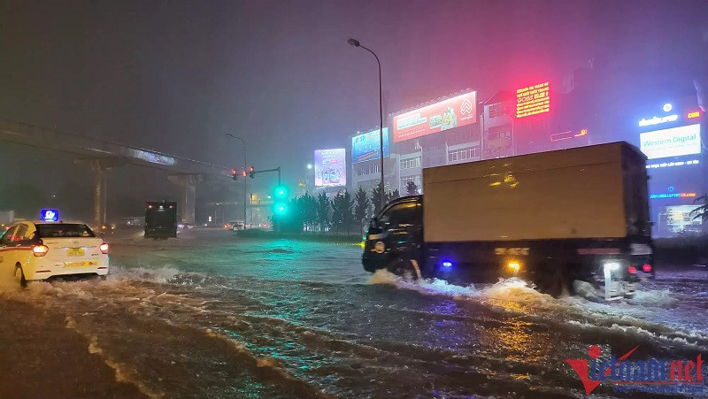 The worst flooding was seen on the streets of Nguyen Khuyen, Vuong Thua Vu, Phan Van Truong, Bui Xuong Trach, Tran Binh, Phung Khoang, Nguyen Chinh and Co Linh, and Vinh Tuy bridge foot area.