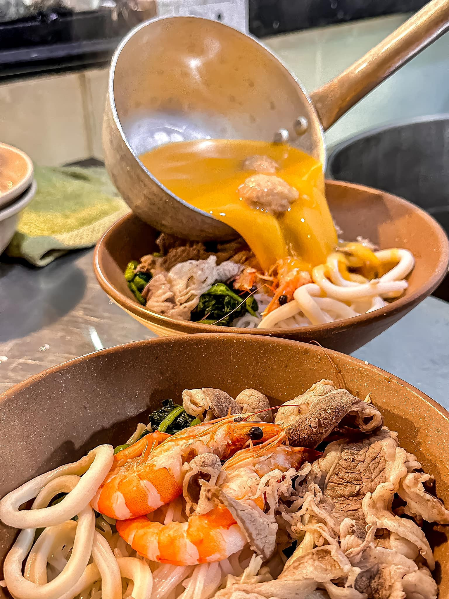 Known for its deliciously spicy and tangy Thai-inspired broth, the restaurant offers a wide variety of fresh, meticulously prepared ingredients, including vegetables, squid, shrimp, mantis shrimp, and fried fish.
