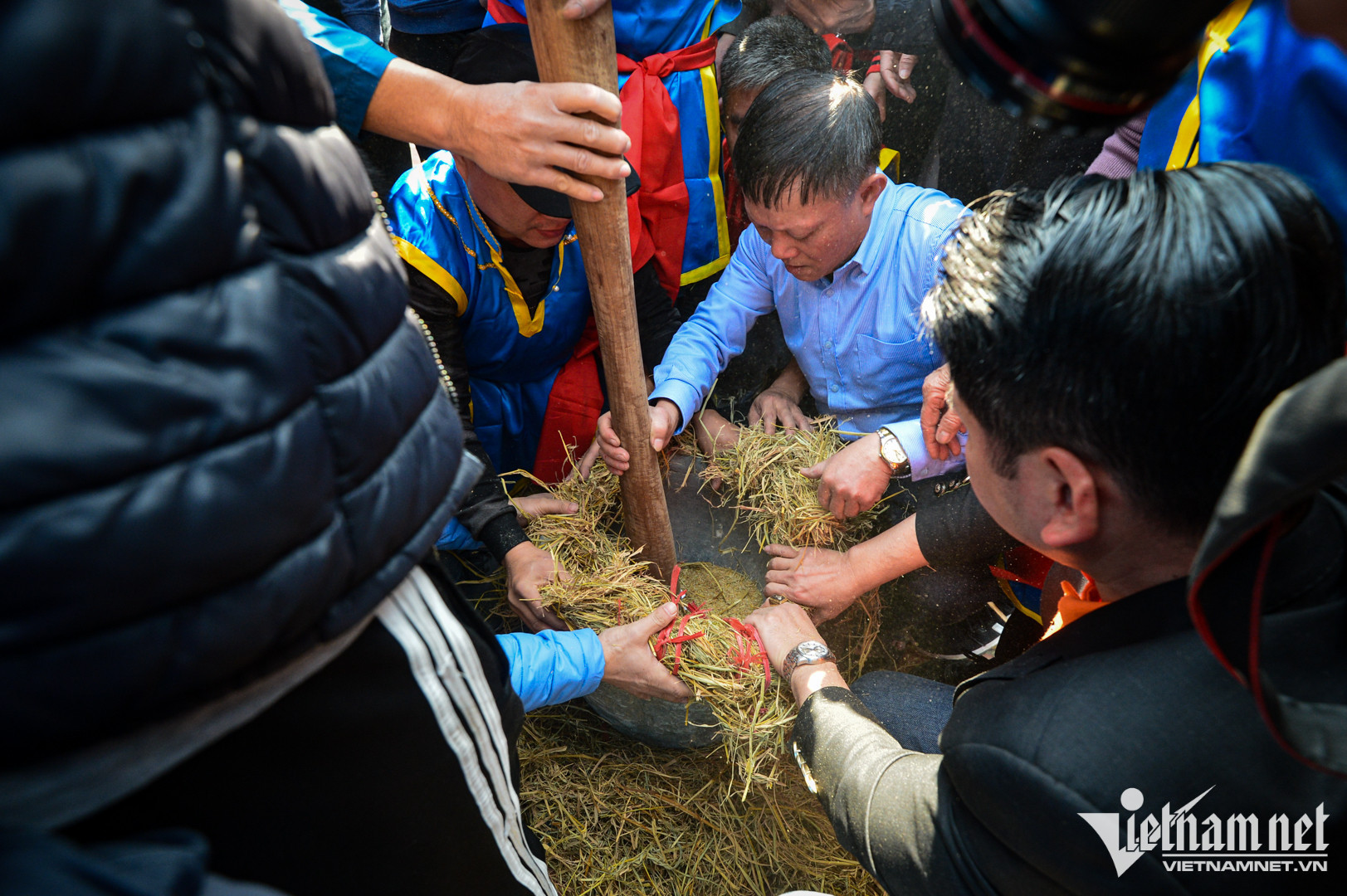 The main parts of the contest include crushing rice, blowing fires, taking water and cooking rice. The contest has a very special "procedure" that when the rice pot runs out of water, the teams will hide the rice pot in piles of straw, that are still smouldering, in the communal house’s yard.