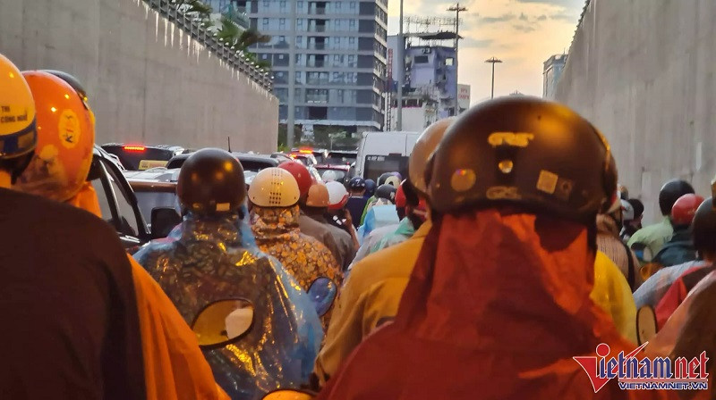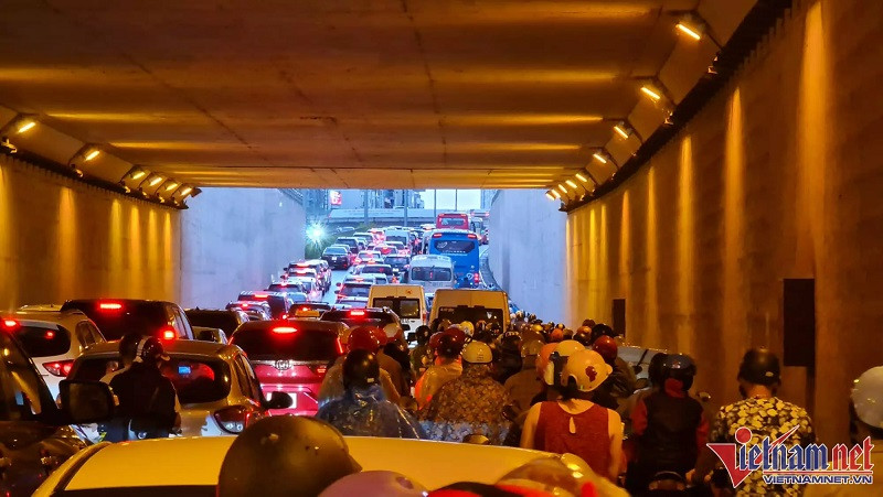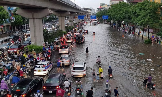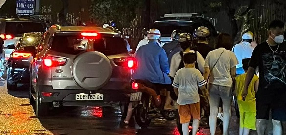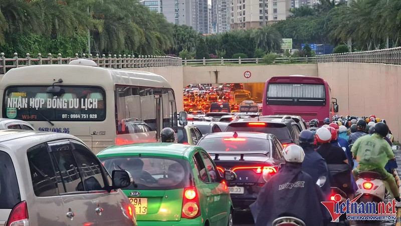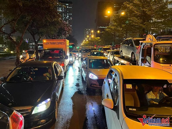 Rain begins to fall at around 2:30 pm and lasts for more than an hour, inundating major arteries of Hanoi. At 5:15pm, serious traffic jams occur on Tran Duy Hung Street. Thousands of cars stood still for hundreds of meters long.