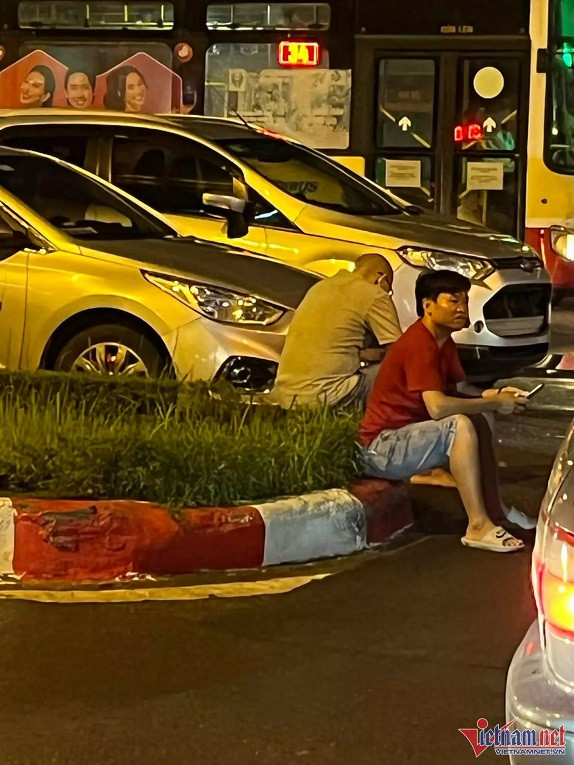 After waiting for a long time, some drivers got off the car and sat at the edge of the median strip in the middle of the road.