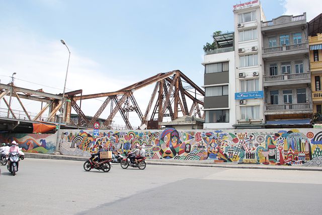 After Hanoi authorities completed the overpass and the walls at An Duong-Nghi Tam intersection, the wall has been quickly covered in graffiti. According to the investor, the new segment will have modern art concept but mesh in seamlessly with the existing segments.