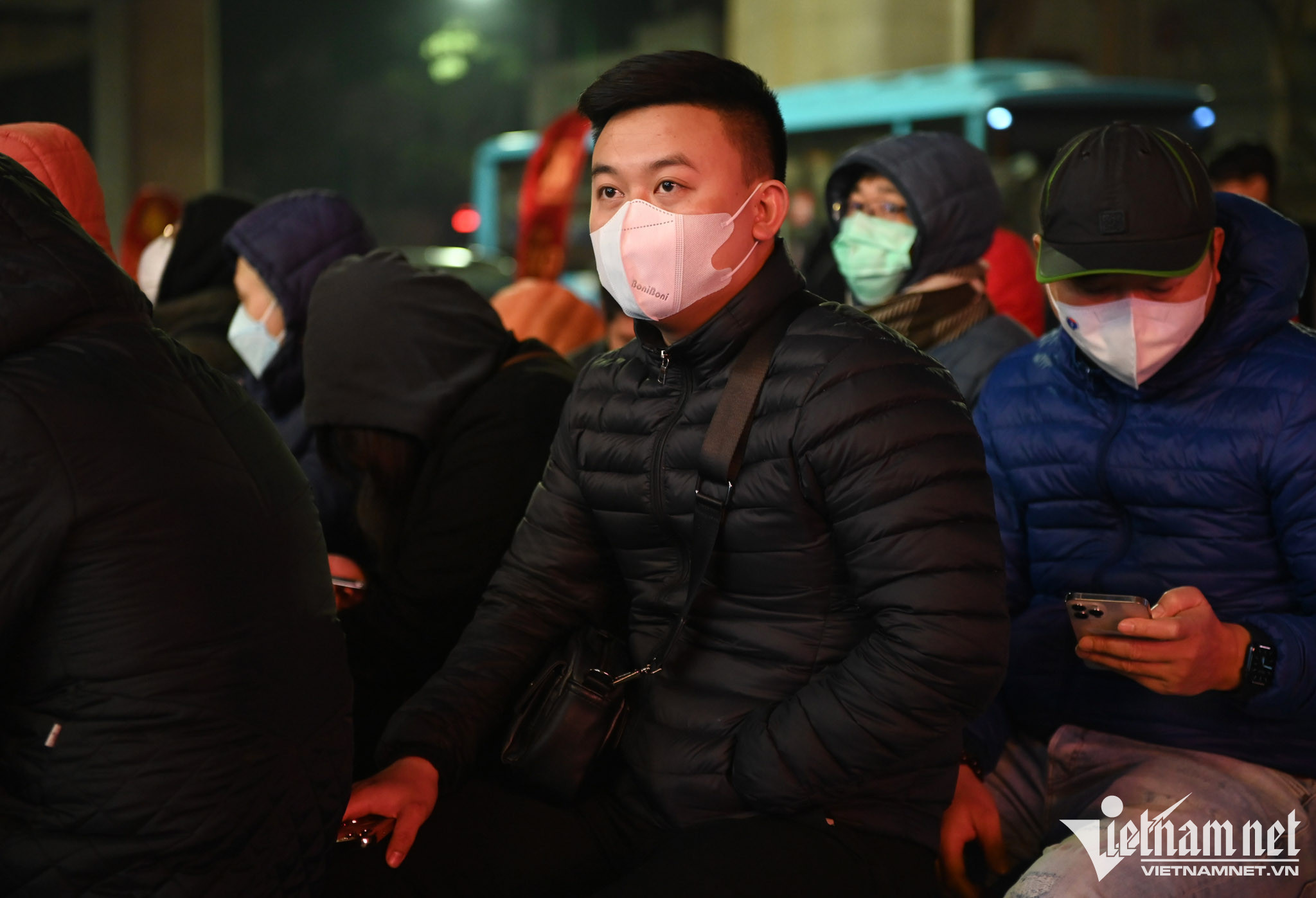 To buy gold for luck on the God of Wealth Day (the 10th day of the lunar year - January 31), many Hanoians queued in front of gold shops on Tran Nhan Tong and Cau Giay streets from 3 am.