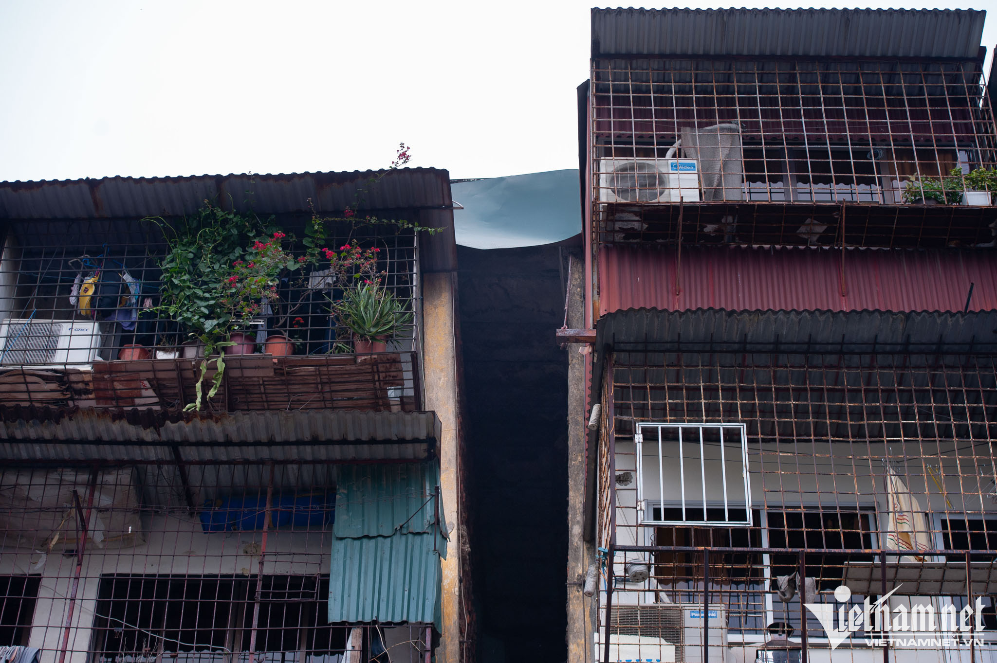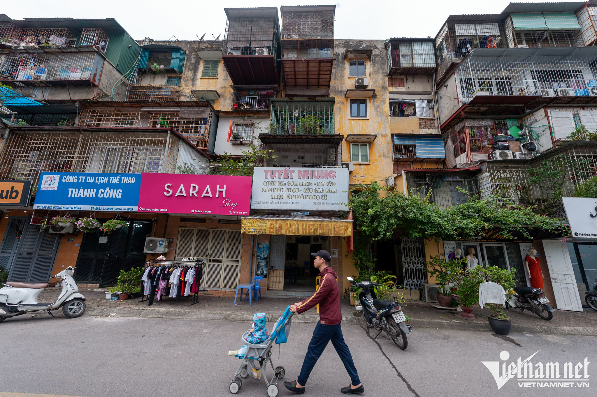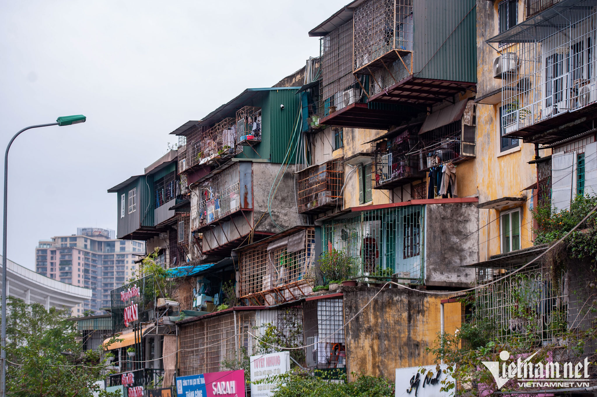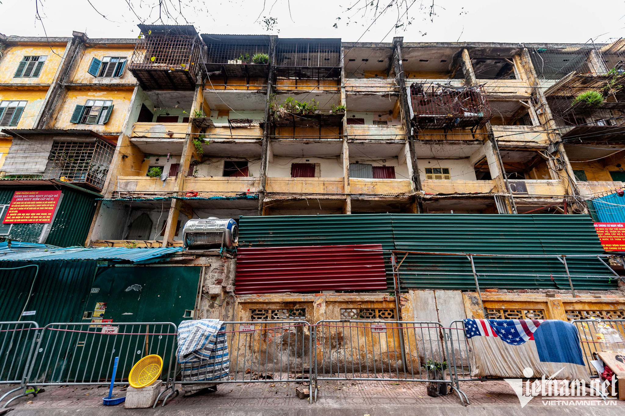G6A Thanh Cong is rated at the highest level of danger, which could collapse at any time. However, many families still live there.The structure of apartments there changed over the years, causing problems for fire-fighting activities.The danger warning was issued for this apartment but many households have not yet relocated to the temporary residence areas. At Giang Vo apartments, most families have moved to temporary houses. The People's Committee of Giang Vo ward has strictly prohibited all activities at the C8 apartment complex.Also in Giang Vo ward, Ngoc Khanh apartments located on "golden land" have seriously degraded.However, many families still live there.Built in 1990, the Ministry of Justice's apartment building in Ba Dinh district has degraded. Local people have been told to relocate to other places. However, some families are still there.Le Hoang Trung said that his family's apartment was originally only 33m2, but was expanded by more than 30m2 to have enough living area for seven people. "The apartment is in disrepair, but because our family members' work and study places are nearby we choose to stay here because the streets are congested," Trung explained.Having lived in the Ministry of Justice apartments for decades, Tran Huy Lieu, 75, said that he wants to stay until his family is compensated for a new apartment. On February 17, Ba Dinh District People's Committee held a dialogue with 23 households who have not moved from deteriorating apartments.