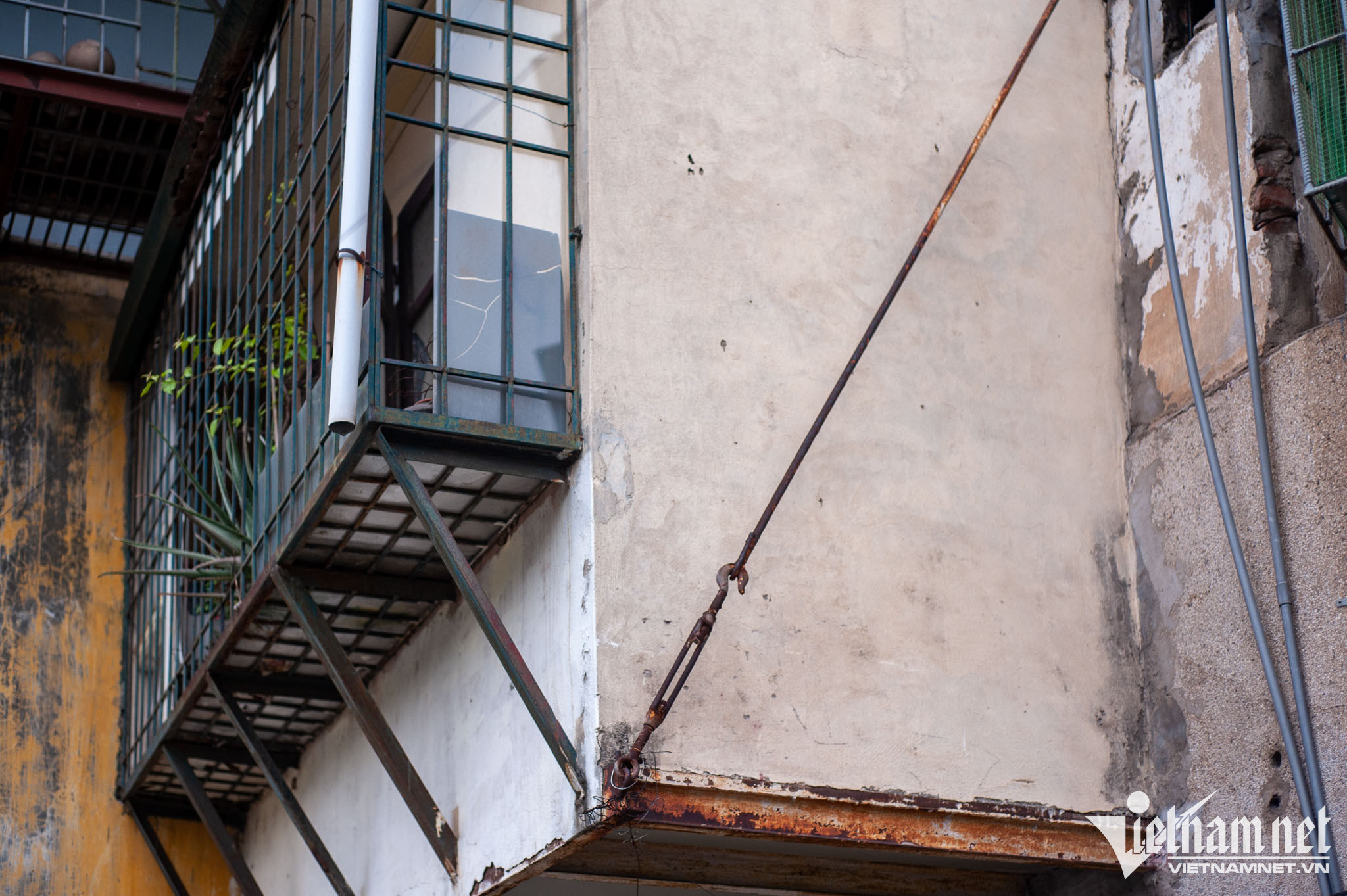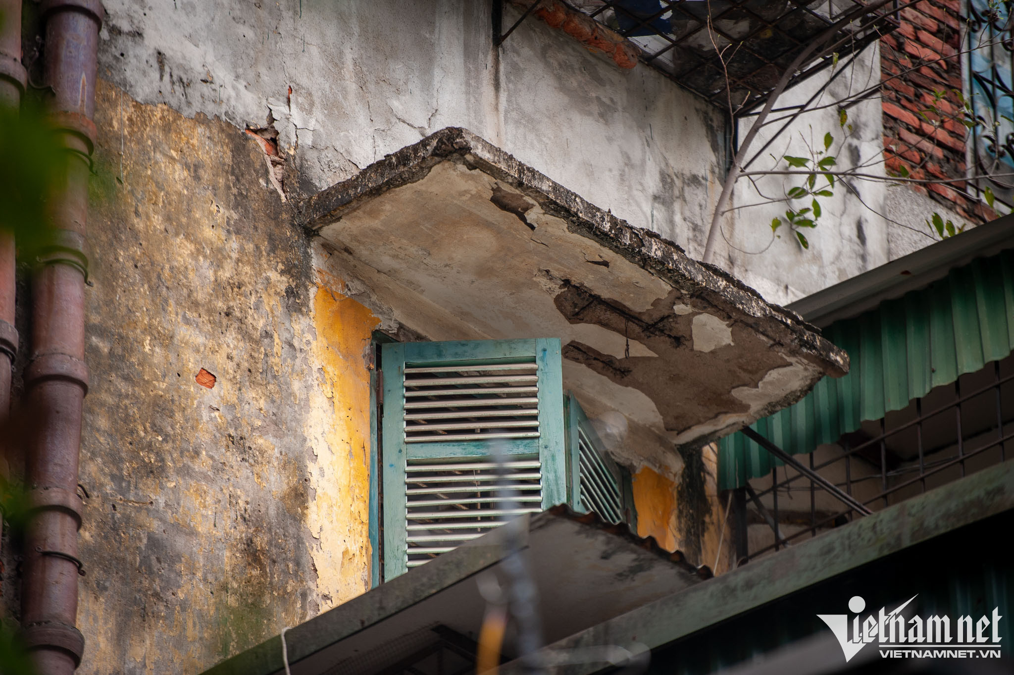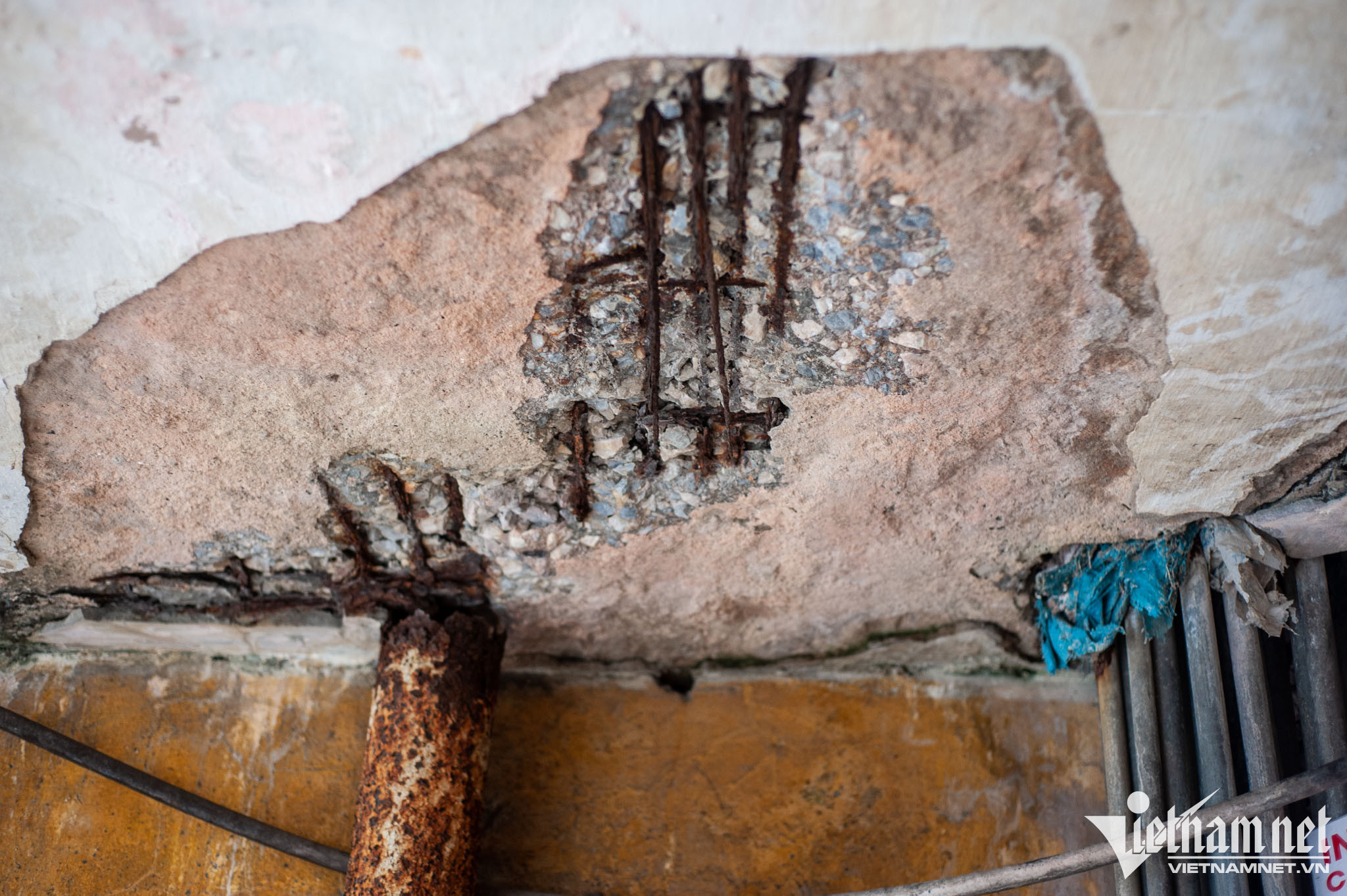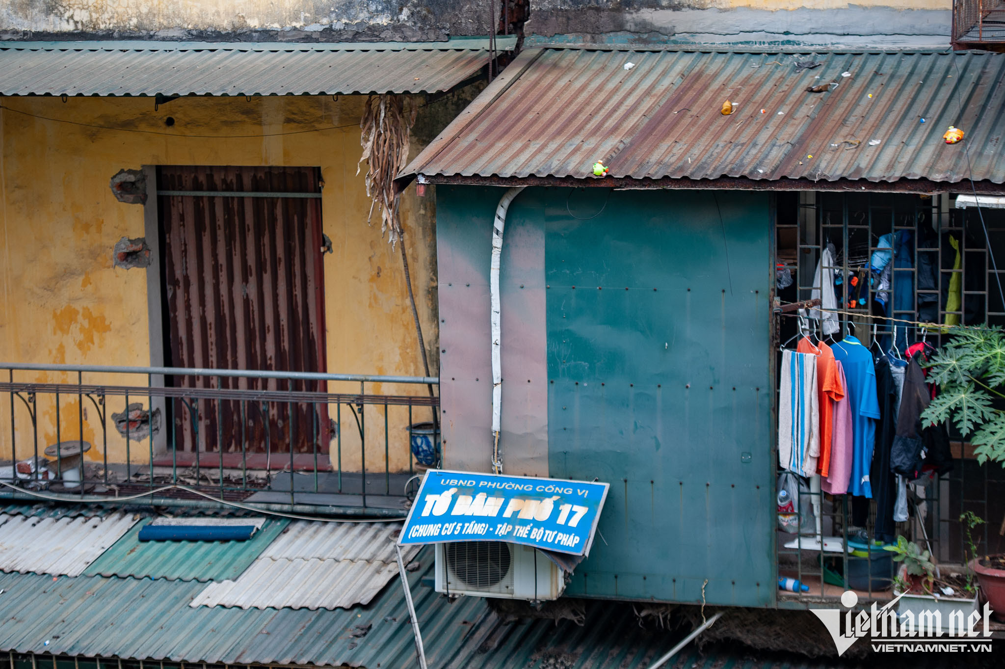 G6A Thanh Cong is rated at the highest level of danger, which could collapse at any time. However, many families still live there.The structure of apartments there changed over the years, causing problems for fire-fighting activities.The danger warning was issued for this apartment but many households have not yet relocated to the temporary residence areas. At Giang Vo apartments, most families have moved to temporary houses. The People's Committee of Giang Vo ward has strictly prohibited all activities at the C8 apartment complex.Also in Giang Vo ward, Ngoc Khanh apartments located on "golden land" have seriously degraded.However, many families still live there.Built in 1990, the Ministry of Justice's apartment building in Ba Dinh district has degraded. Local people have been told to relocate to other places. However, some families are still there.Le Hoang Trung said that his family's apartment was originally only 33m2, but was expanded by more than 30m2 to have enough living area for seven people. "The apartment is in disrepair, but because our family members' work and study places are nearby we choose to stay here because the streets are congested," Trung explained.Having lived in the Ministry of Justice apartments for decades, Tran Huy Lieu, 75, said that he wants to stay until his family is compensated for a new apartment. On February 17, Ba Dinh District People's Committee held a dialogue with 23 households who have not moved from deteriorating apartments.