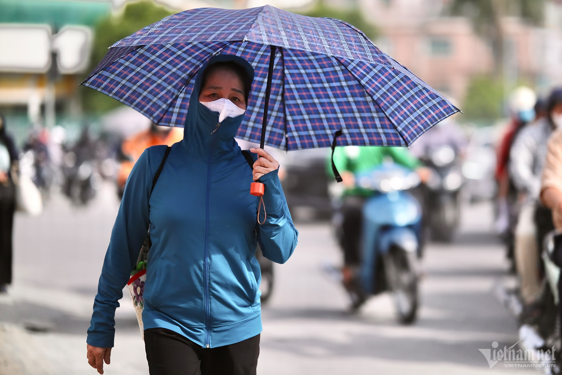 Passersby in Hanoi struggle under the sweltering heat, with temperatures reaching up to 42 degrees Celsius.