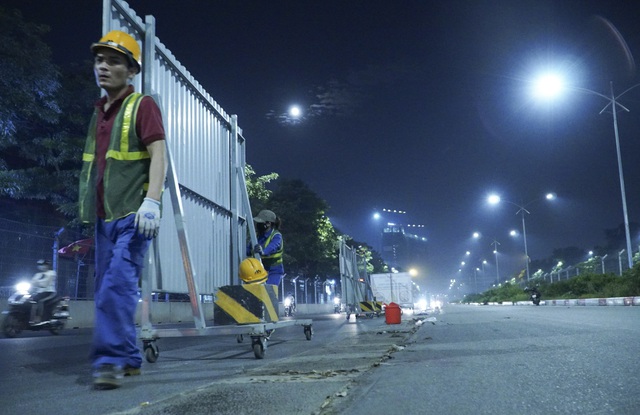 Hundreds of workers worked overnight on June 8 to dismantle the fences on Le Quang Dao and Le Duc Tho streets.