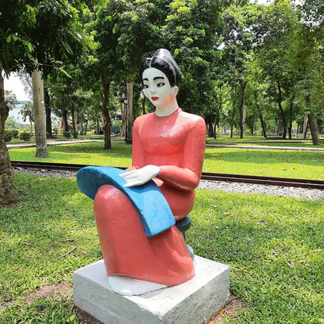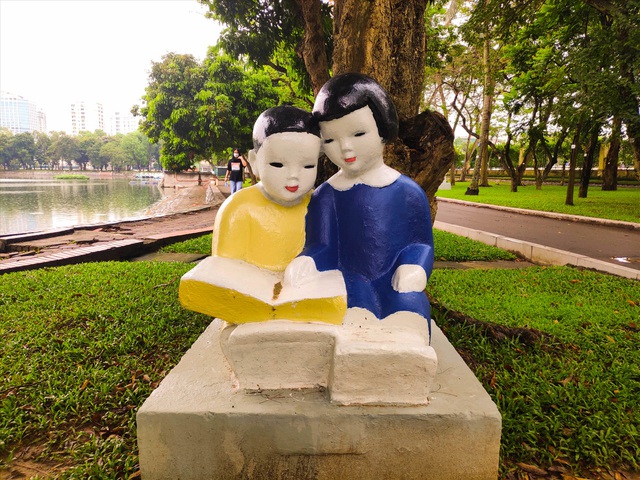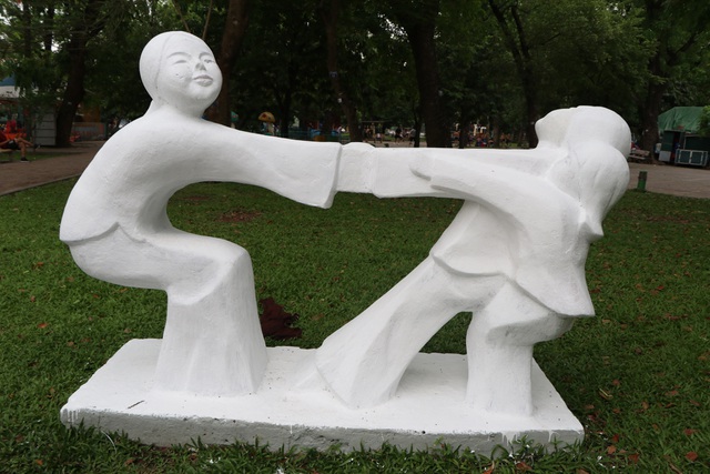 The 17 statues displayed in Thong Nhat Park are graduation works by students at the Vietnam University of Fine Art during the 1960s. The statues have been damaged by time and weather so the management board repaired and repainted the statues many times.