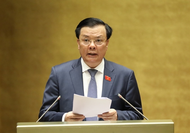 Minister of Finance Dinh Tien Dung presents a brief on the draft resolution on a special mechanisms for Hanoi in front of the National Assembly on Tuesday.