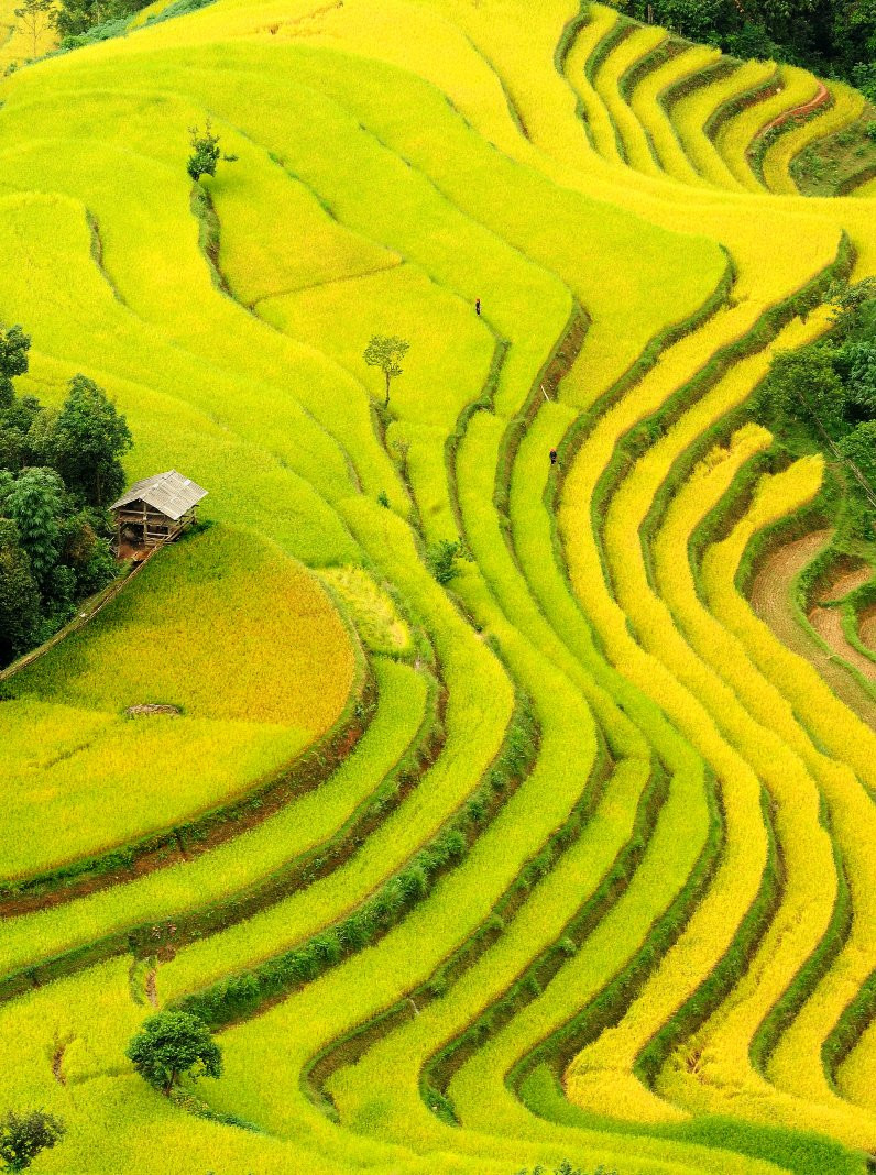 Travelers venturing into provinces like Yen Bai, Lai Chau, Lao Cai, and Ha Giang during this time are greeted by a breathtaking sight—the mesmerizing golden terraced rice fields.