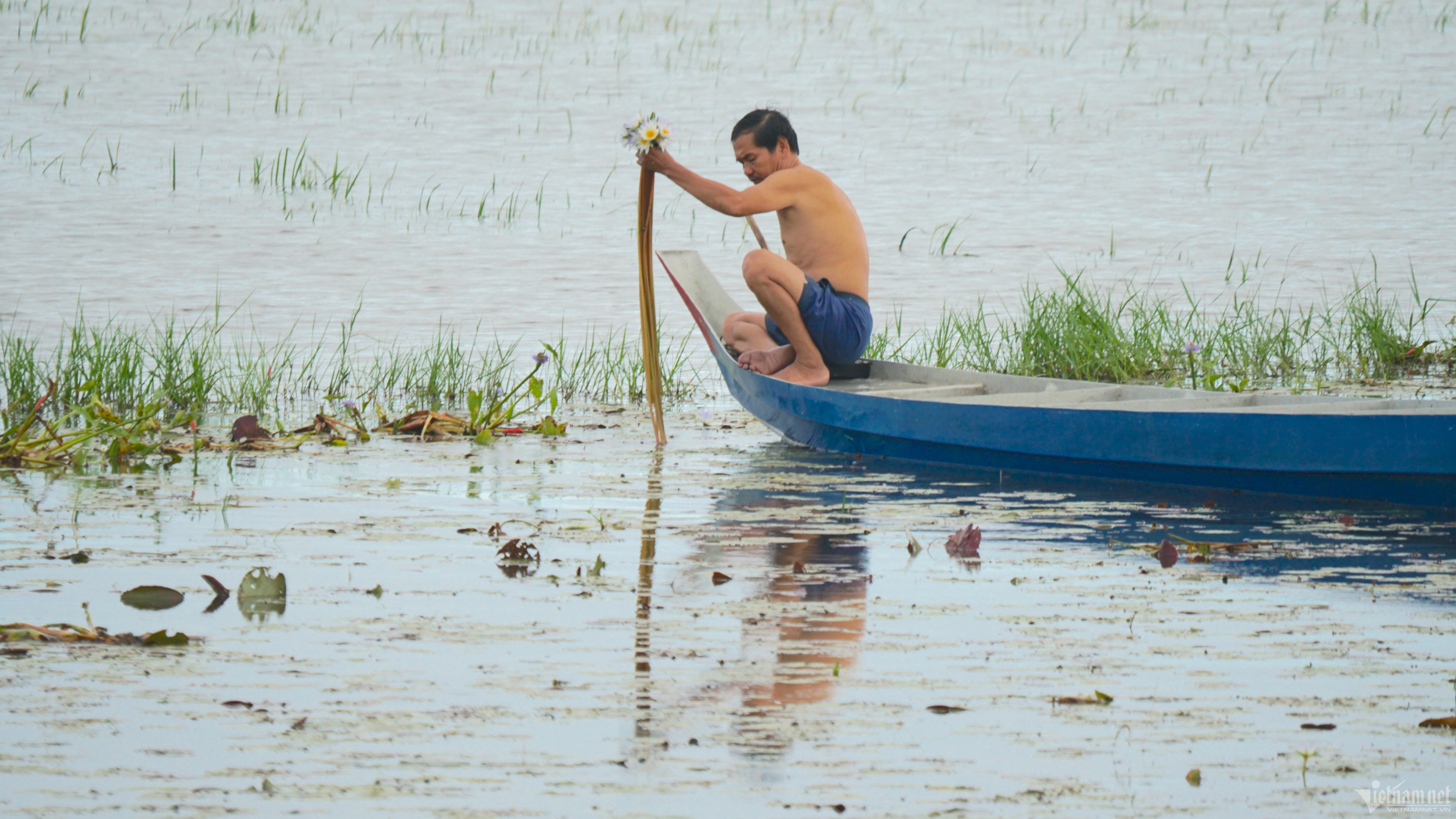 “Water lilies are only abundant during the flood season. This plant grows and rises with the flood waters. The more the water rises, the longer the leaf stalks and stems become," Mr. Cuong said.