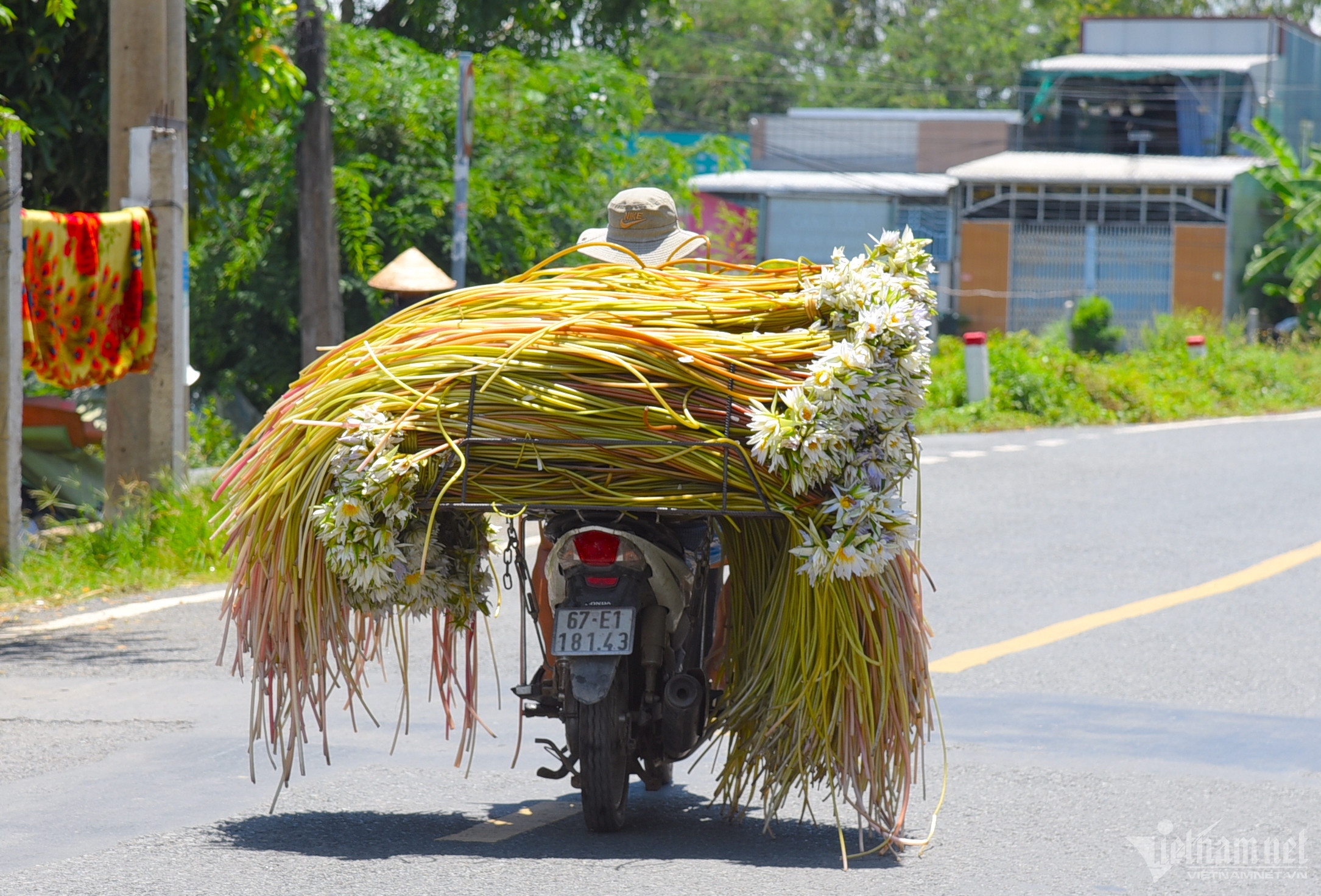 Mr. Le Chau Thanh, 52, from Nui Sam ward, Chau Doc city, a trader of water lilies, said that after collecting the flowers from local residents, he sells them to wholesalers in the city of Long Xuyen for 9,000-11,000 VND/bundle.