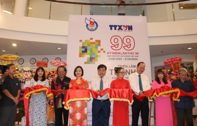| The “99 Group”, consisting of professional artists and former journalists, has officially started a painting exhibition on June 18 to celebrate the 99th anniversary of the country’s Revolutionary Press Day at HCM City District 3’s Vietnam News Agency. VNS Photo Gia Linh |