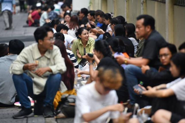 People queue to buy coffee at a street water stall. Each coffee costs VND15,000-20,000.