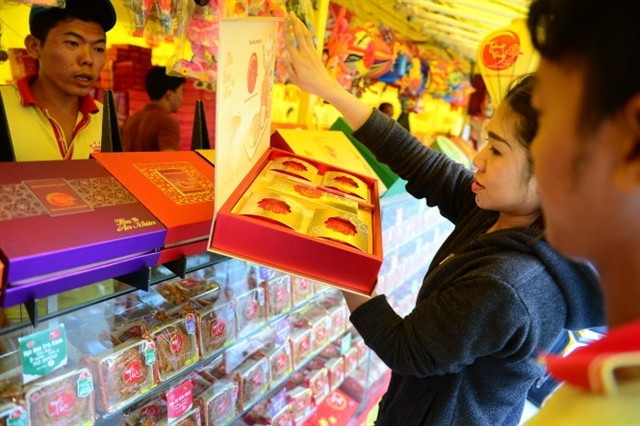 | People shopping for mooncake products in HCM City. Photo tuoitre.vn |