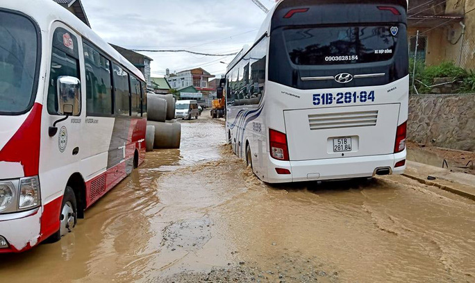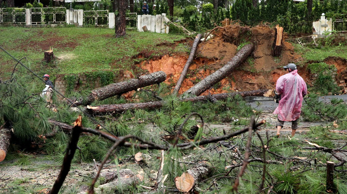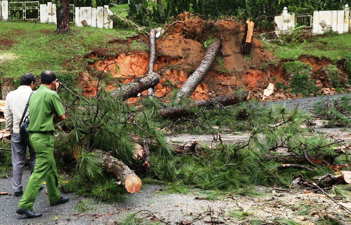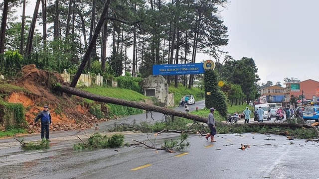 The two-hour downpour happened on Thursday afternoon caused many trees on some streets in Dalat to collapse. Some areas in Yersin and Ngo Thi Sy streets faced landslides, posing the risk of collapse for a hotel on Ngo Thi Sy Street.