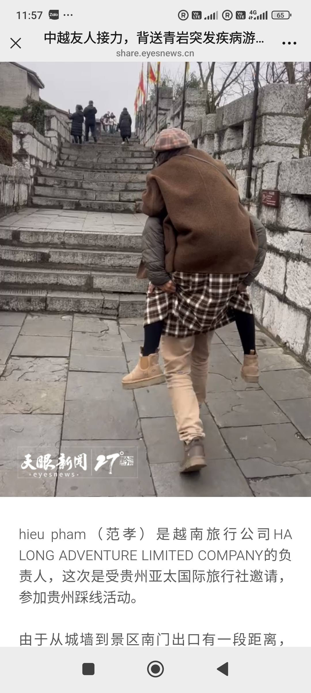Upon learning that she was suffering from severe abdominal pain, the Vietnamese traveler decided to carry her out of the tourist site to find a taxi and rush her to the hospital. Thanks to his timely intervention, the woman overcame the critical situation and later tried to find out his identity to express her gratitude.