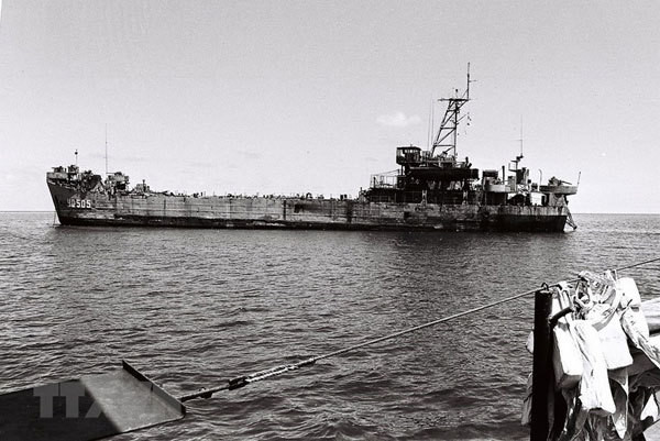 | HQ-505, the only ship not sunk in the battle, was beached on Co Lin Reef by its captain after catching fire during the battle. It became a sovereignty landmark of Việt Nam, and Co Lin Reef was protected from the enemy’s attack. The State praised HQ-505 as a Hero of the People's Armed Forces for the glorious victory. File Photo VNA |