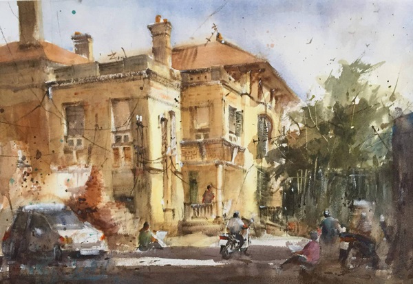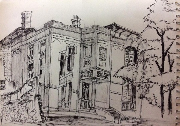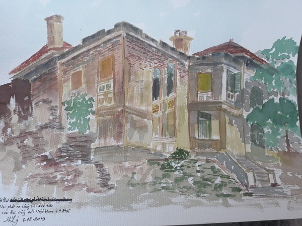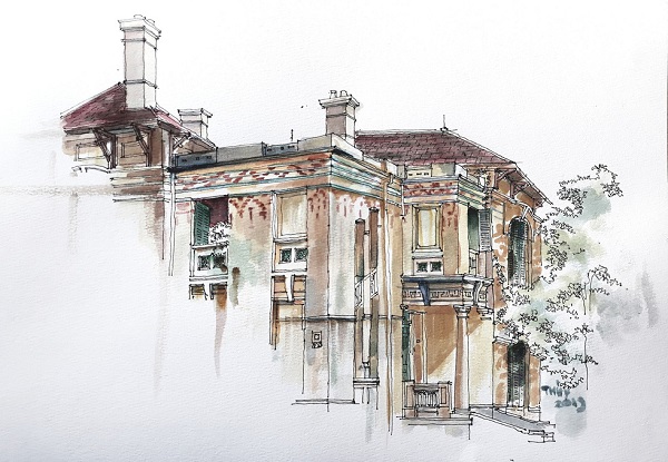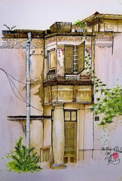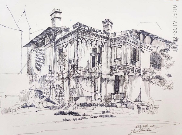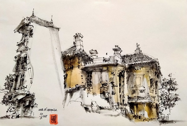 The 100-year-old villa still retains the beauty of the flourishing period of French architecture in Vietnam - sketch by Luong Vu Lan Anh. |