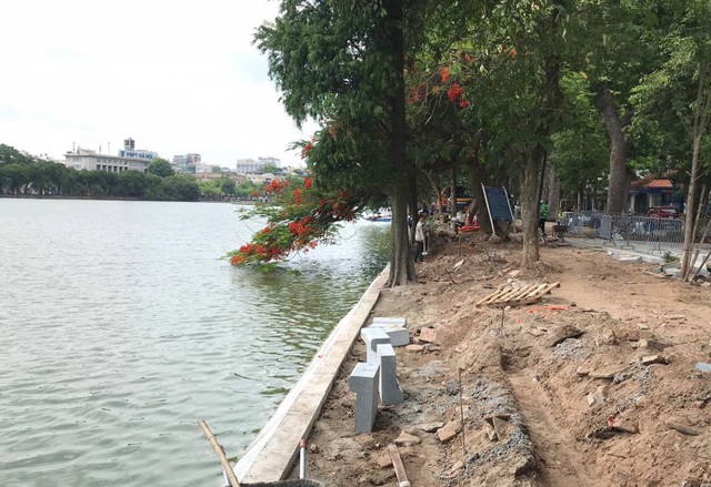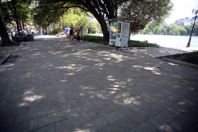 The pavements around Hoan Kiem Lake has deteriorated overtimes. A pilot programme to use natural stone from Binh Dinh and Phu Yen provinces was carried out until June before Hanoi authorities agreed to replace all pavements around the lake.