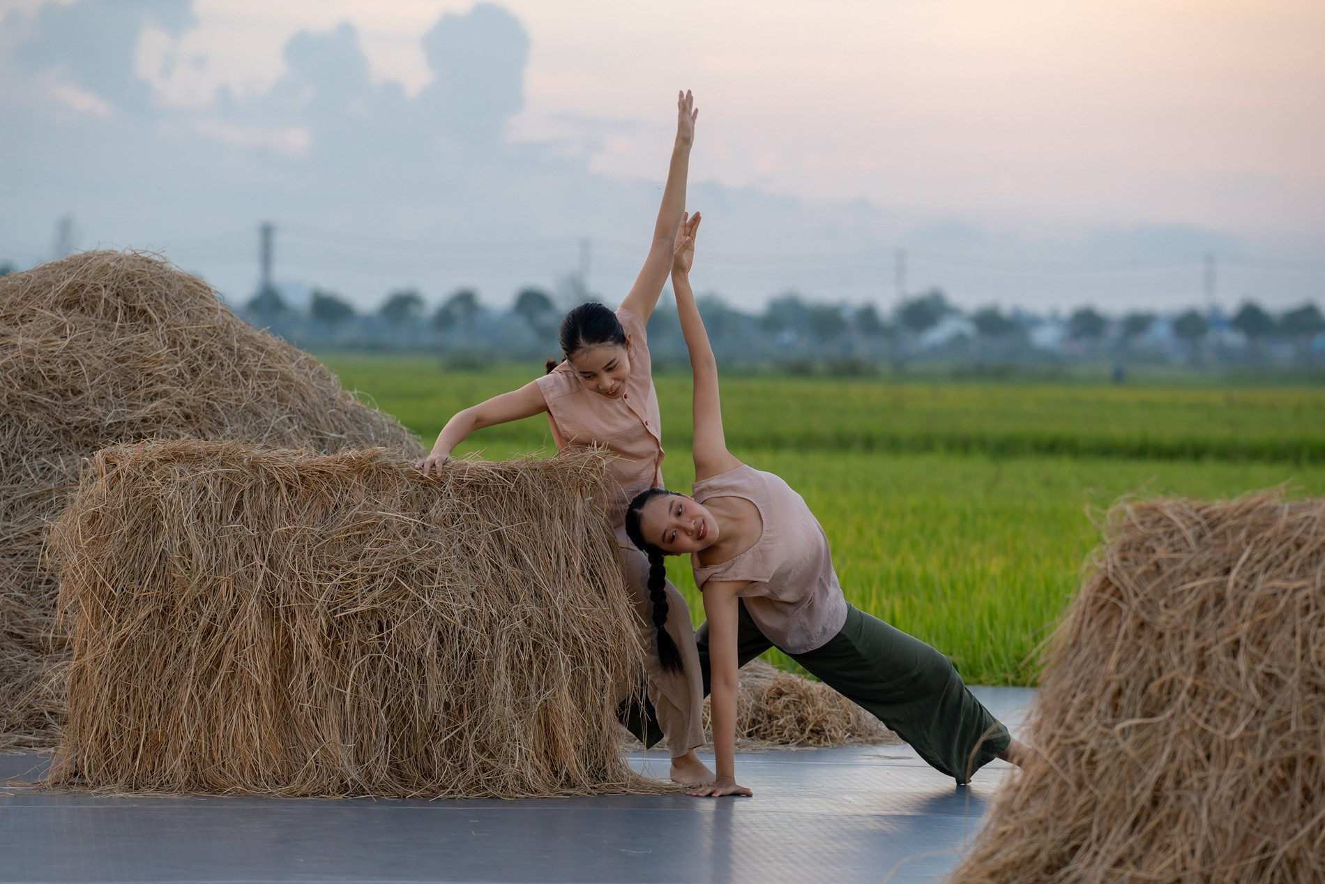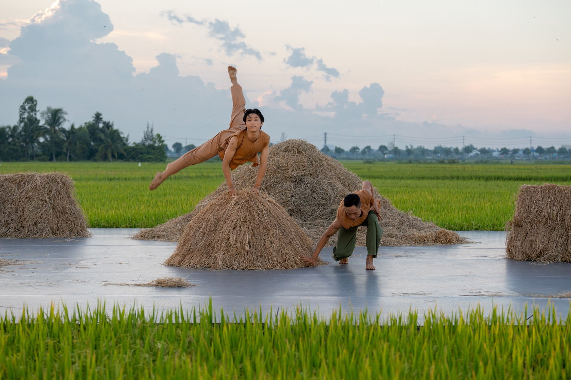Set against the backdrop of ripe rice fields during harvest season, "Rom" marks the first time Arabesque has introduced the concept of ambiance dance - merging contemporary dance with the natural environment - in Hoi An.