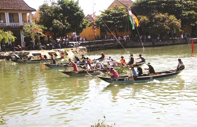 | Tourists and locals participate in the boat racing across Hội An City on the Hoài River. VNA/VNS Photo Bang Nhiệm |