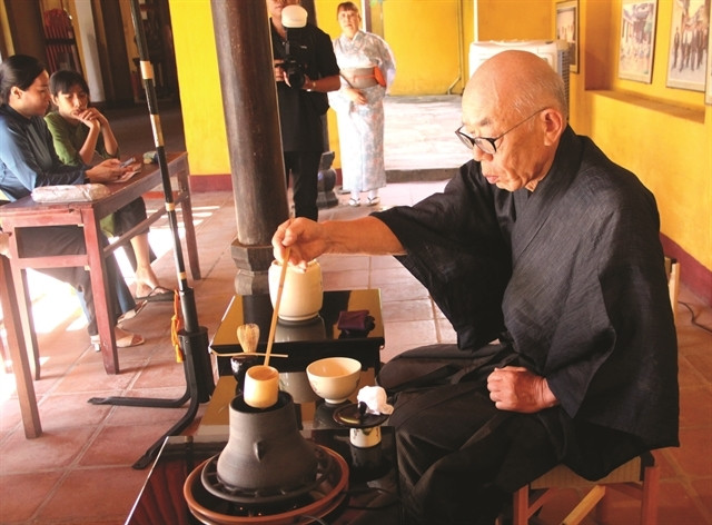 | A Japanese tea master conducts a Japanese tea ceremony at the culture exchange programme. VNA/VNS Photo Bang Nhiệm |