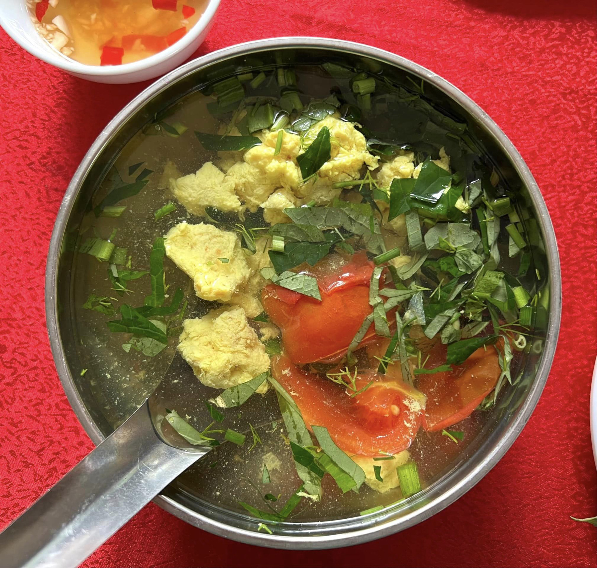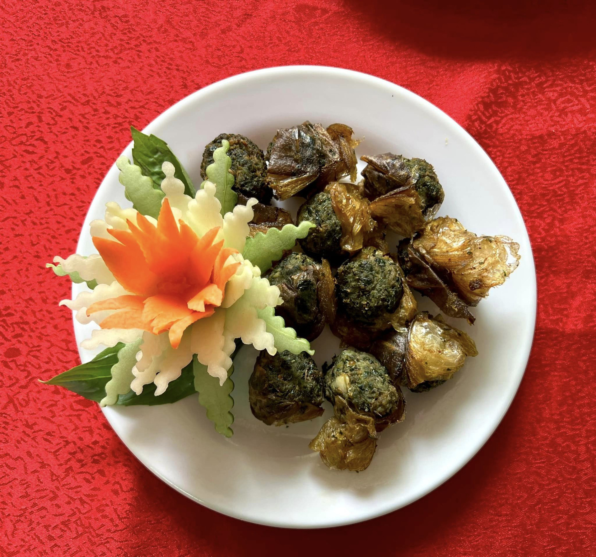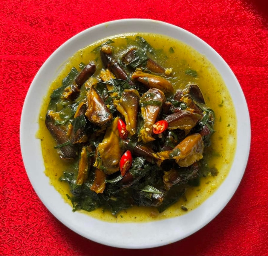 Horseshoe crab meat is rich in protein and has cooling properties, so it is often paired with ingredients and spices that have warming effects, such as garlic, lemongrass, pickled bamboo shoots, chili, and la lot (wild betel leaves), to balance the dish.