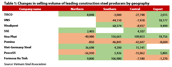However, southern and central Vietnam markets witnessed fierce competition for market shares. After running the first steelmaking furnace in Dung Quat Complex in July 2019, HPG has increased selling volume dramatically in the southern and central Vietnam markets, by 91% and 50% respectively. Another steel manufacturer enjoying high growth in the southern market was FHS as it started to supply wire-rods last year. Besides, HPG’s new factories in Central Vietnam also help it lessen costs to deliver products to the South compared to its old factories in Northern Vietnam.