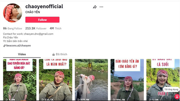 Created last July, the TikTok channel of Chao Thi Yen, a 32-year-old girl from the Dao Tuyen ethnic group in the northern province of Lao Cai, has had nearly 213,000 followers and 4 million likes.