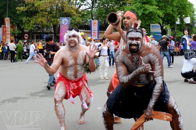 ![]() An interesting combination between the Jazz Combo Box Band (France) and a member of the Co La Band (Vietnam). ![]() Exciting dances performed by Russian dancers. ![]() Mysterious dances of an Indian female dancer. ![]() Cuban artists perform at Hue Festival 2012. ![]() Vietnamese artists introduce folk music instruments to foreign tourists. ![]() The Liceo Folkloric Dance Troup from the Philippines reproduces the community ceremony of the people on Sulu Island in the Philippines. ![]() Aboriginal artists from Australia perform on a street in Hue. ![]() Venezuelan street artists perform on a street in Hue City. ![]() Mongolian and Filipino artists perform on the street. ![]() The harmony between musical instruments of Australian aborigines and gongs of artists in the Central Highlands, Vietnam. |