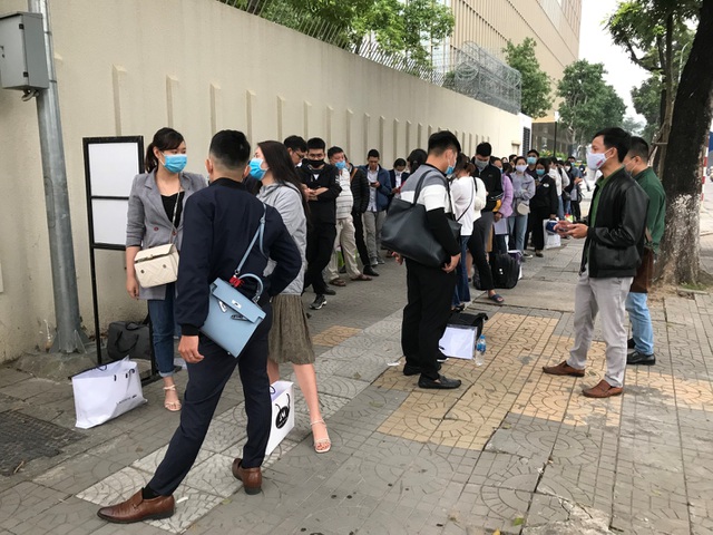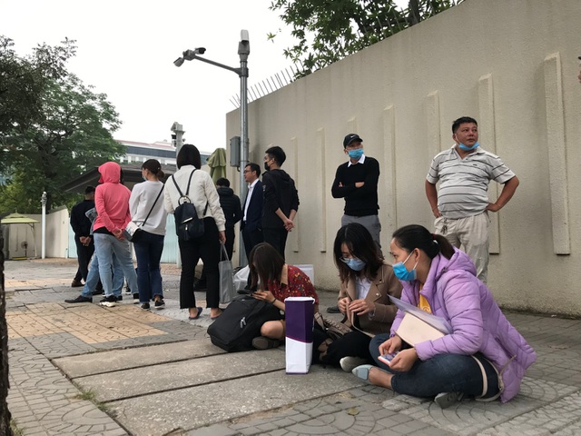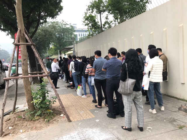 Since 5 am on Wednesday, lots of people queued up at the embassy on Lieu Giai Street, Hanoi, for their turn. Two hours later, two rows of people stood outside the embassy.