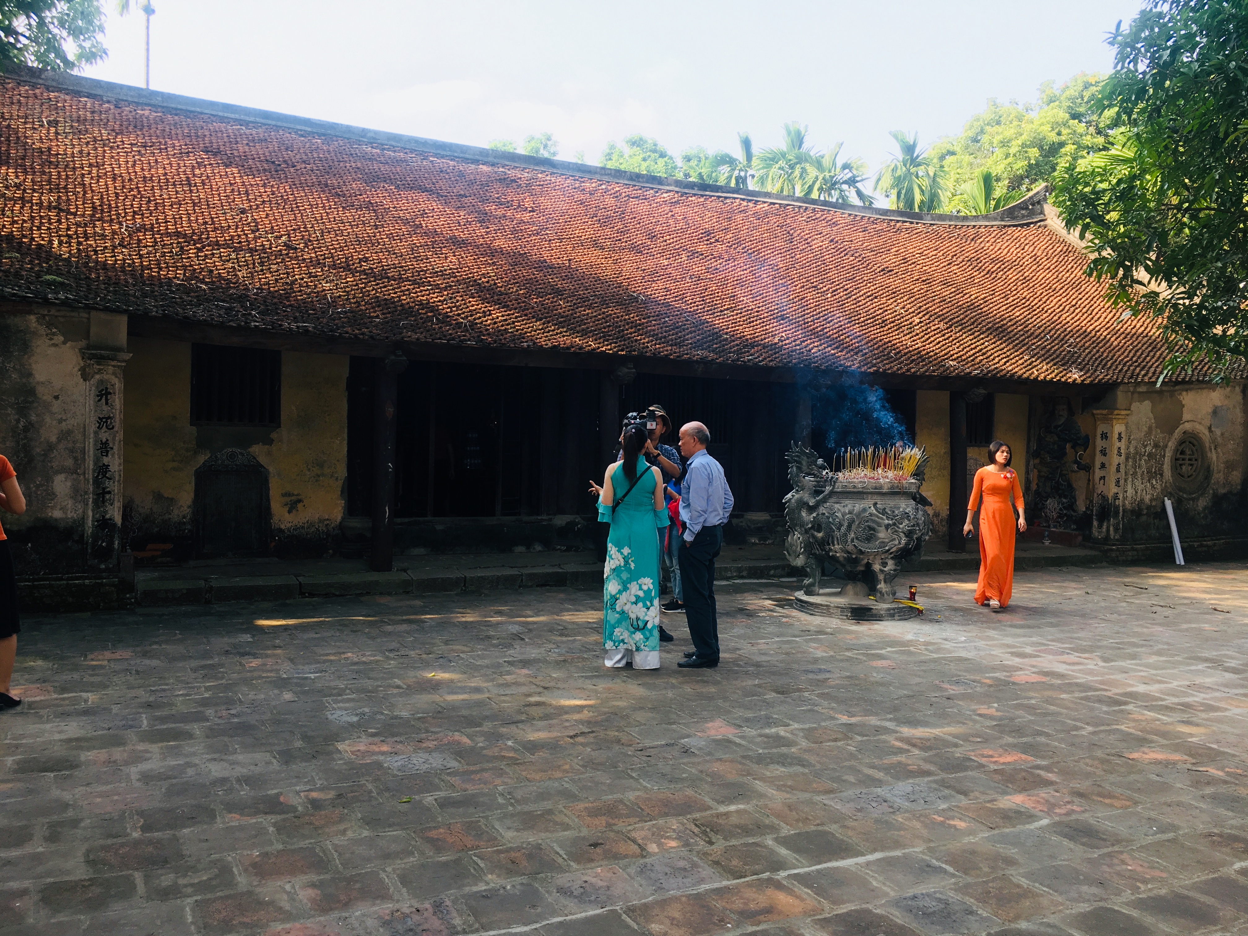 The village is connected to a market and a Buddhist pagoda by a stone bridge, which extends across a small river. The bridge, which was built in 1860, is almost 20 metres long, two metres wide and has nine spans. Each span is made up of a slab of stone with two dragon engravings on both ends. According to a local tour guide, this stone bridge is now the only of its kind in the Red River Delta region.