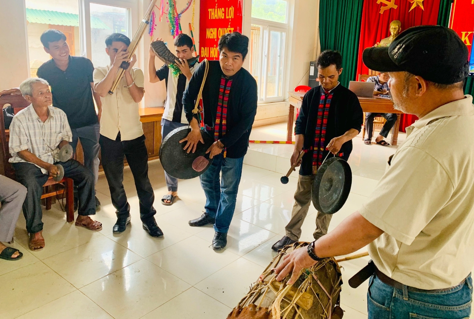 Artisans of Van Kieu and Pa Ko ethnic groups directly taught students about the art of gong performance such as how to chant, harmonize, arrange formations, and dances... to be able to practice gong performances in a complete and unique way.