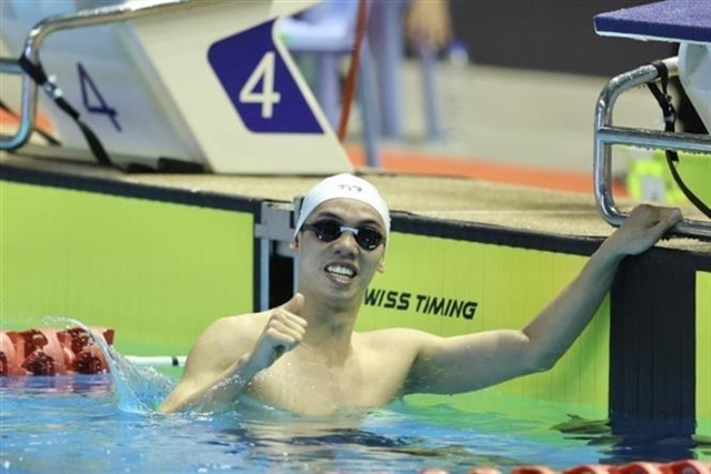| Swimmer Nguyễn Huy Hoàng wins his third individual gold in the men's 400m freestyle. — VNA/VNS Photo |