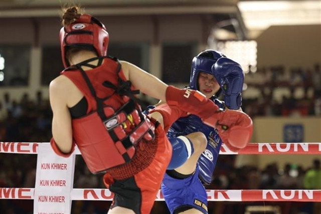 | Triệu Thị Phương Thủy (left) fights to win gold in the women's 51kg Kun Kmer. — VNA/VNS Photo |