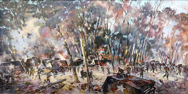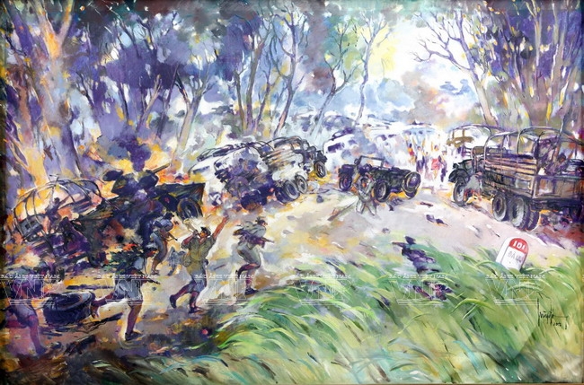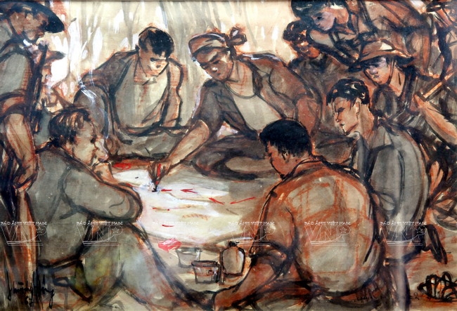 With sketching techniques, Huynh Phuong Dong reflected the moments of life and wars in an honest manner. Based on his initial sketches, he created water colour and oil paintings, such as “Ap Bac Battle” (1963) and “Binh Gia Battle” (1965). In his paintings, each character, each scene and each battle were expressed in detail that bring the viewers a feeling of being present at the places where the events were taking place.