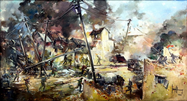 Thanks to his creativeness and great efforts, he was awarded the State Prize for his paintings, “Ap Bac Battle”, “Binh Gia Battle” and “La Nga Battle” in 2007 which marked an important milestone in his career. Furthermore, many of his paintings have been exhibited both at home and abroad, including Eastern European countries, Cuba and China and are highly appreciated in artistic circles.