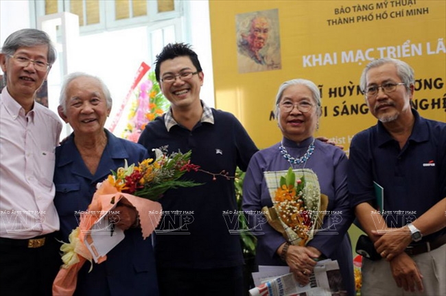 ![]() Painter Huynh Phuong Dong (second from right) at the exhibition of “Huynh Phuong Dong – a life of artistic creation” held at Ho Chi Minh City Museum of Fine Arts.