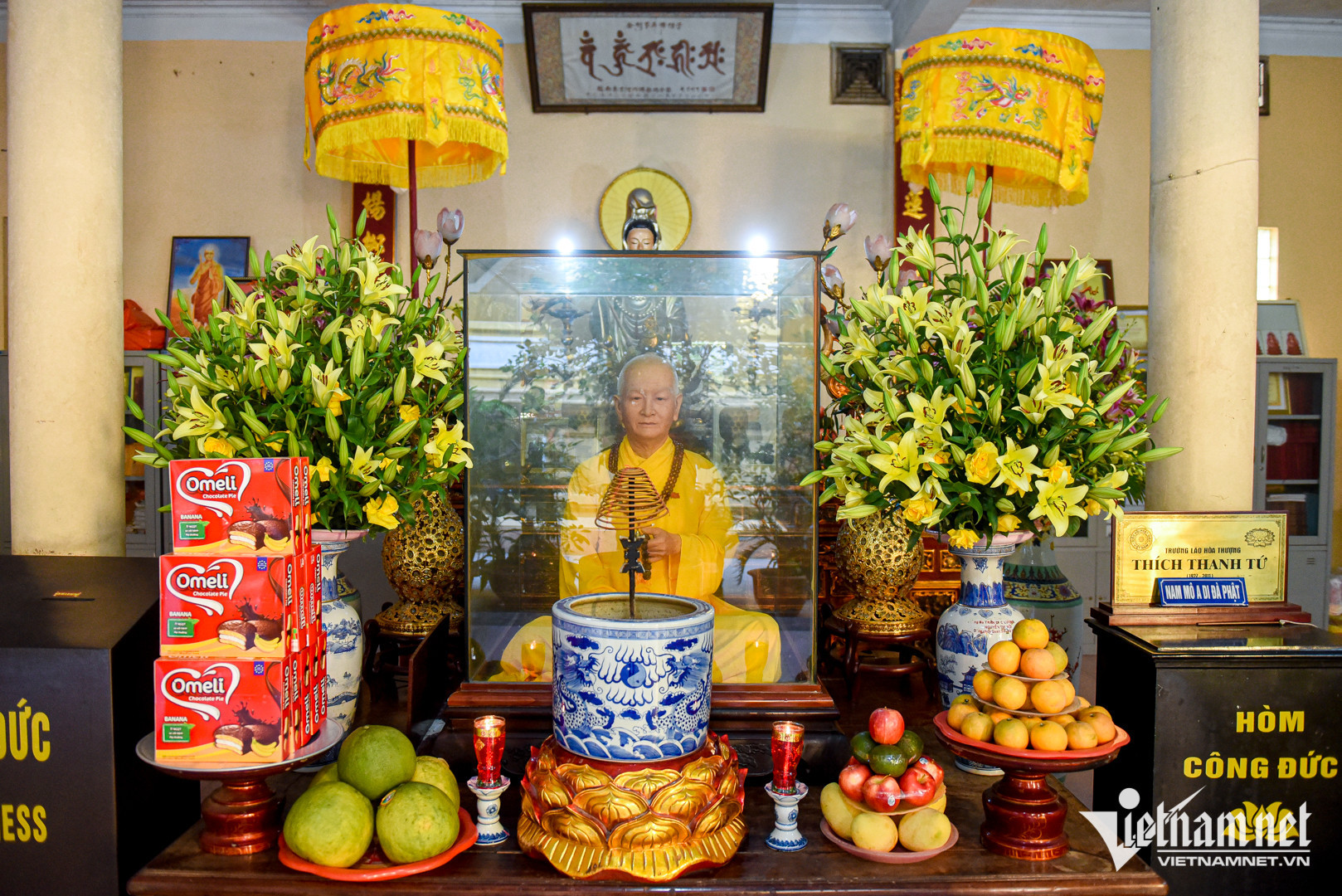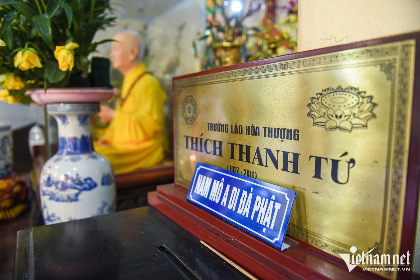 Quan Su Pagoda is home to a statue of Venerable Thich Thanh Tu, former Vice Chairman of the Executive Council of the Vietnam Buddhist Sangha and an abbot at the pagoda. The statue is a full-scale model of the monk with realistically shaped skin, hair, tendons, eyebrows and facial expression.