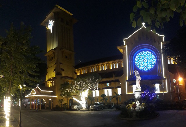 The Church is the most beautiful one in Hanoi with a large outdoor space decorated with rope motifs.