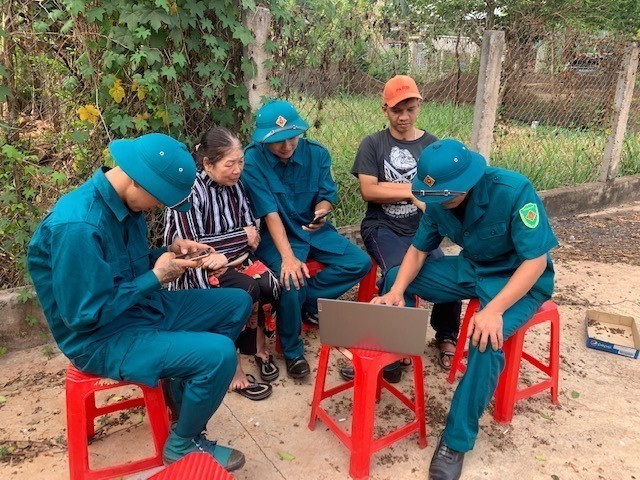 | Local police in Nhơn Hòa Village, Chư Pưh District guide local people to use social networks safely. VNA/VNS Photo |