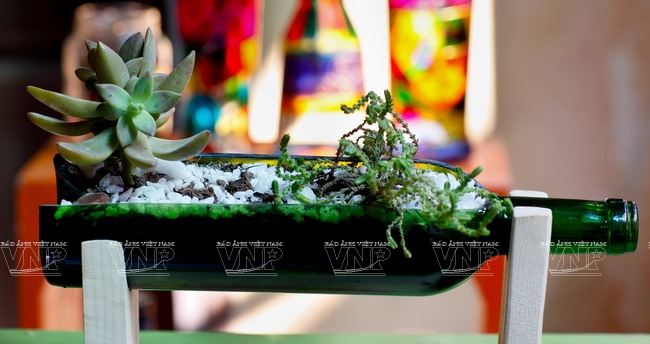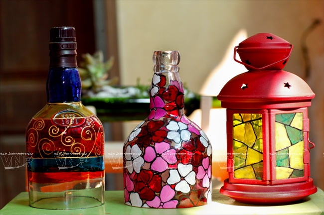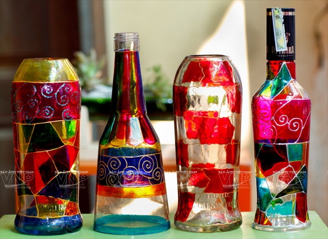 In the beginning, they made some objects using bottles to decorate their house and to give to friends as presents. Once, Thuy showcased her products at a craft fair held at Chu Van An High School (Hanoi) which unexpectedly drew attention from many people so she got the idea of making pieces of art from bottles to sell.