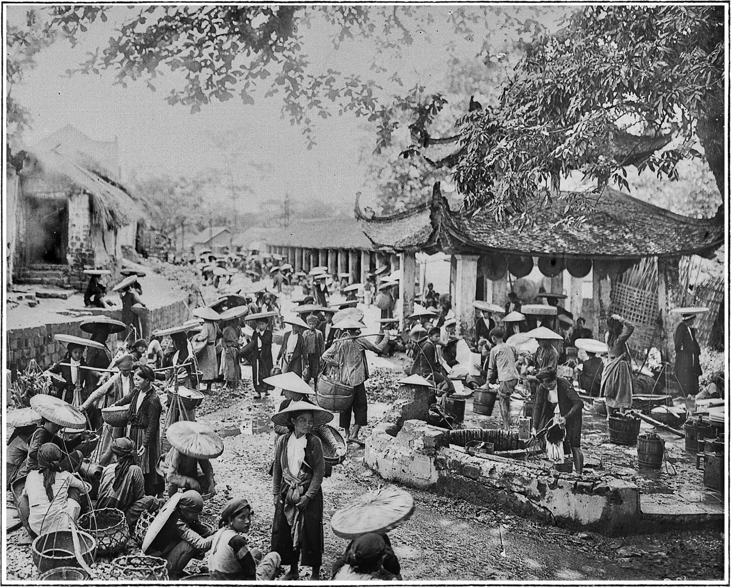 Workers in the Cho Dien mine (Ban Thi commune, Cho Don district, Bac Kan province) in the early 20th century.Mechanical product displayed at the Grand Palais (Hanoi exhibition center), in 1928.A market street in Hue ancient capital city, illustrated in the journal 'L'Illustration' in 1883.A corner of Dong Xuan market, Hanoi in the early 20th century.A Buoi market-day in Hanoi, where people brought all kinds of goods, mainly agricultural products, to sell and exchange.