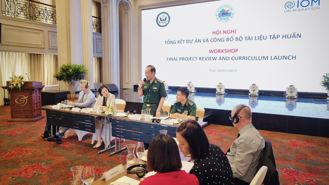The International Organization for Migration (IOM) in Vietnam coordinated with the Department of Drugs and Crime Prevention (PCMT&TP), the Vietnam Border Guard Command to organize a conference "Project Summary and Ministry Announcement". Training materials on human trafficking prevention and combat sponsored by the International Narcotics and Law Enforcement Agency (INL), US Department of State.