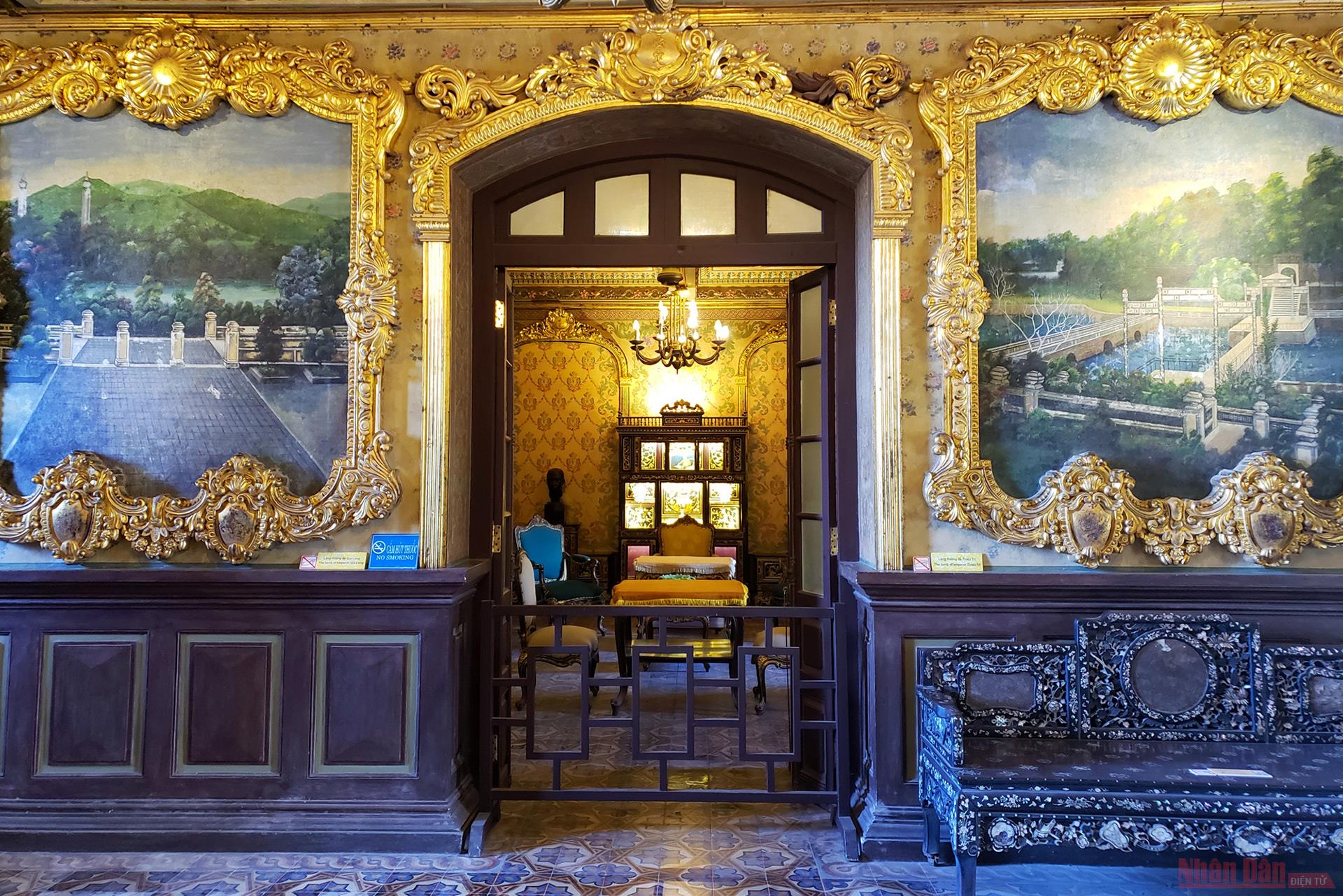 The main hall is the most outstanding structure of Khai Tuong Building, featuring six wall paintings depicting the tombs of six Nguyen emperors.