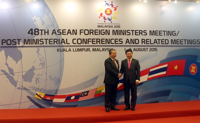 ![]() Deputy Prime Minister/Foreign Minister PhamBinh Minh and Malaysian Foreign Minister Anifah Aman at the opening ceremony of AMM 48.